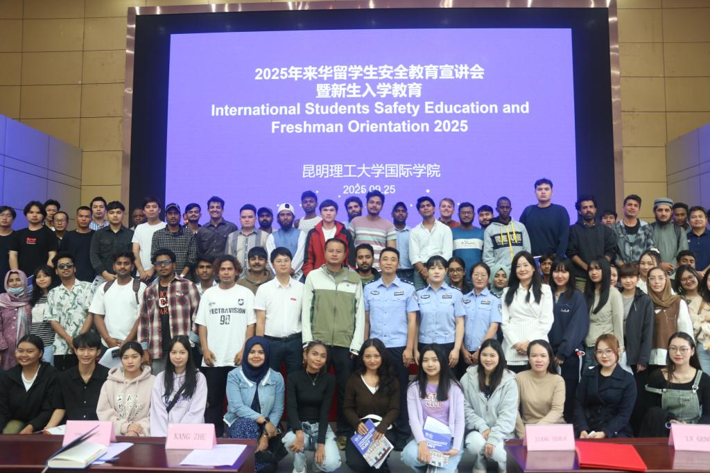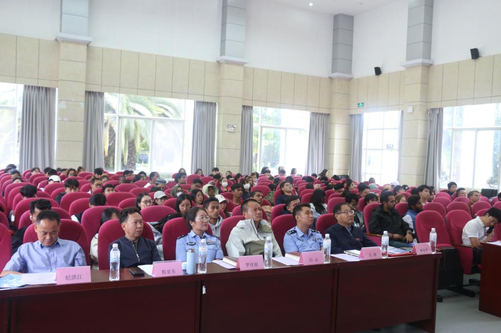 为帮助来华留学生尽快了解和掌握中国法律法规及校纪校规,切实提高昆明理工大学来华留学生的安全防范意识和避险能力,助力留学生顺利融入校园生活,9月25日下午,由国际学院承办的2025年度来华留学生安全教育宣讲会在呈贡校区举办。昆明理工大学党委常委、副校长蒋业华出席活动。昆明市公安局出入境管理局、吴家营派出所、昆明理工大学学生社区教育管理中心相关代表参加活动,来自俄罗斯、泰国、老挝、柬埔寨、巴基斯坦等国家的200余名留学生参加宣讲会。