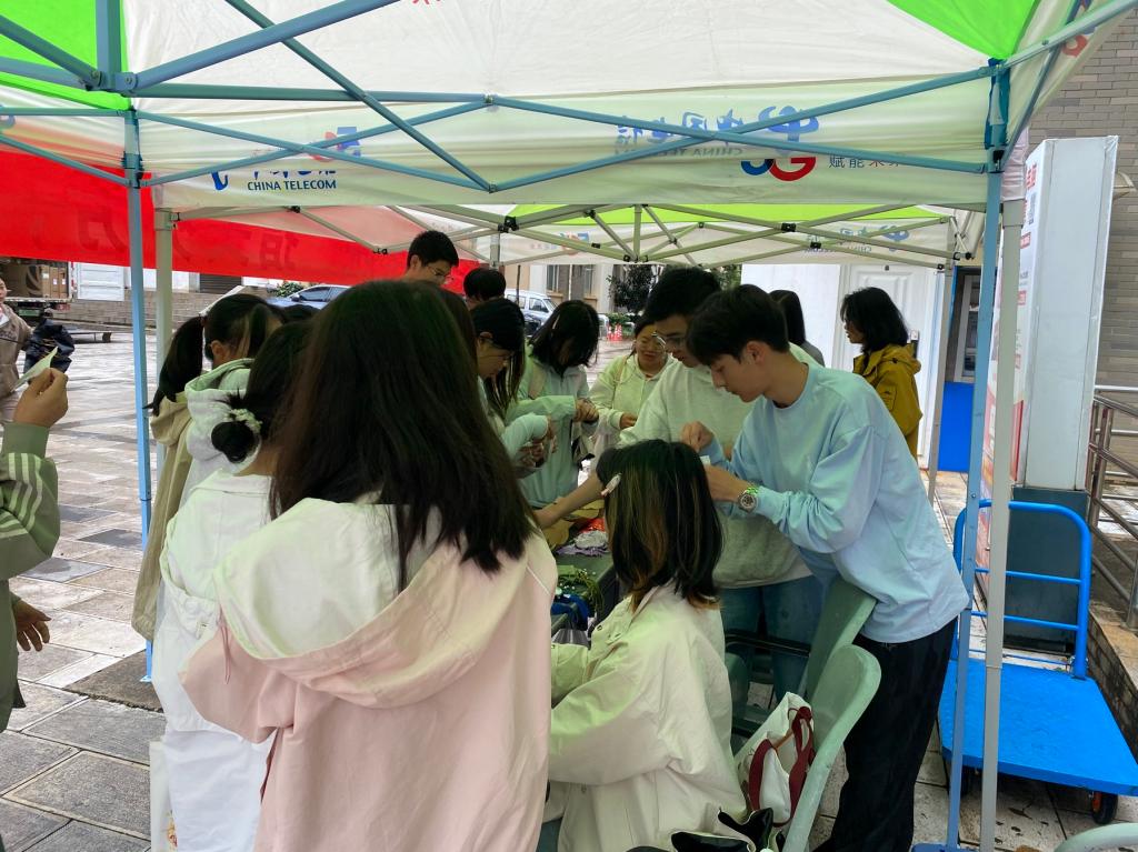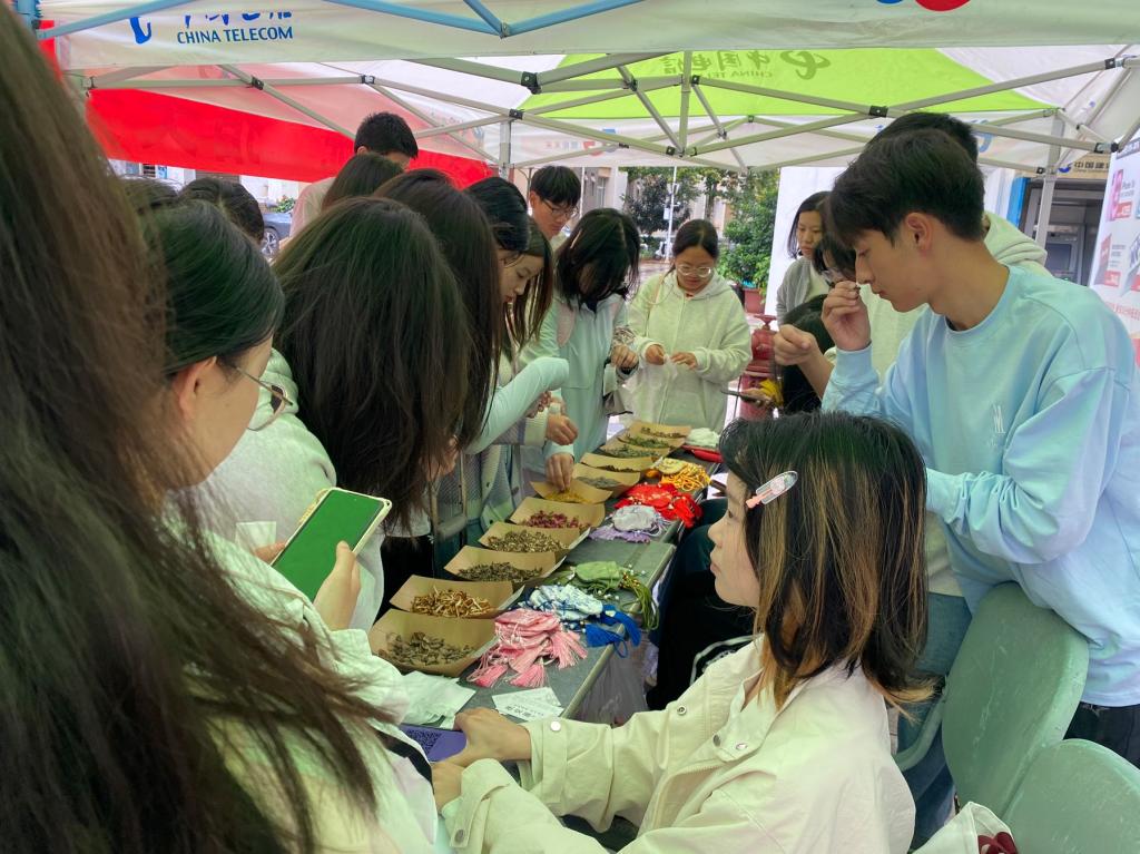 活动参与度与互动性颇高,不仅有国际学院的同学们,还吸引了其他院系众多同学积极参与,现场人流如织。国际学院青年志愿者们以饱满的热情和耐心,向同学们讲解各类中药材的功效、香囊的文化渊源以及制作技巧,师生、同学间互动频繁,现场氛围热烈温馨。