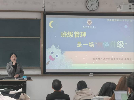 活动特别邀请了来自昆明理工大学附属呈贡学校的三位资深教育工作者——教科室主任贾舒媛、教导处主任李耀勋以及校长助理奉正和,作为主讲嘉宾,他们均是教学管理与研究领域的佼佼者,不仅多次荣获市级教学成果奖,更在青年教师培养方面积累了丰富的经验。在现场,贾舒媛老师以“新课标下的互动课堂搭建”为切入点,拆解了“分层教学落地”等实操技巧;李耀勋老师结合班级管理案例,分享了“师生沟通的共情式表达”;奉正和老师则解析了“新手教师如何从教学实践中提炼研究课题”的难题,同步回应了“职场初期压力调节”等学子关切的问题。