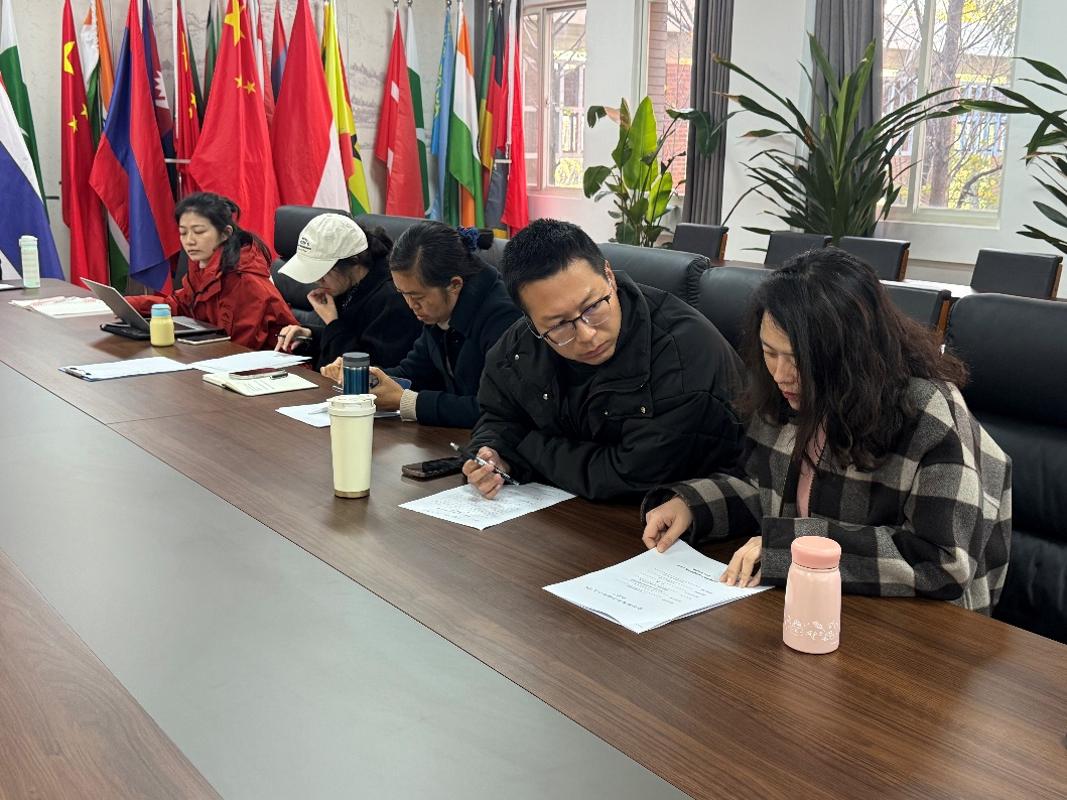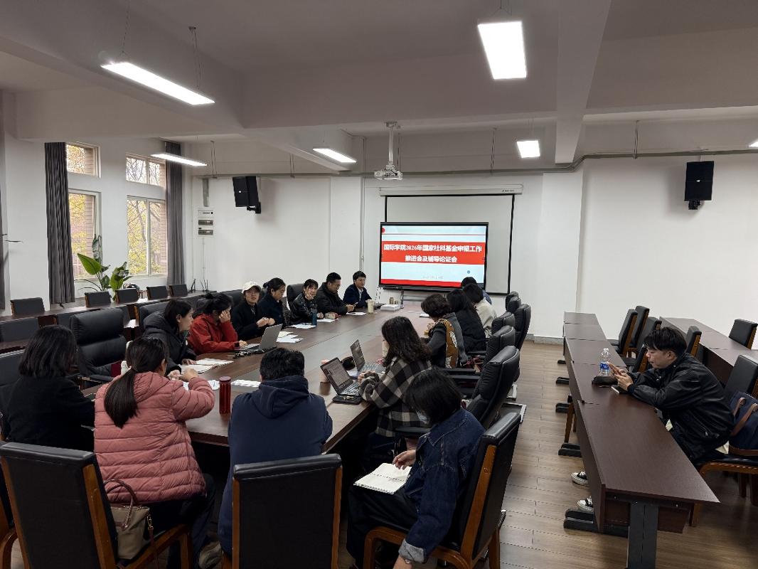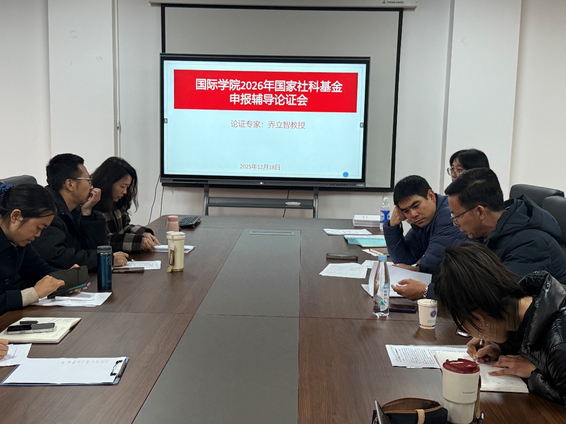 2025年12月18日下午,国际学院组织召开2026年国家社科基金申报工作推进会及辅导论证会。会议分为推进会与专题辅导两个环节,旨在扎实推进学院国家级科研项目申报工作,提升教师项目选题与论证质量。国际学院分管领导、国家社科基金申报专员、科研秘书及全体专任教师参加会议。